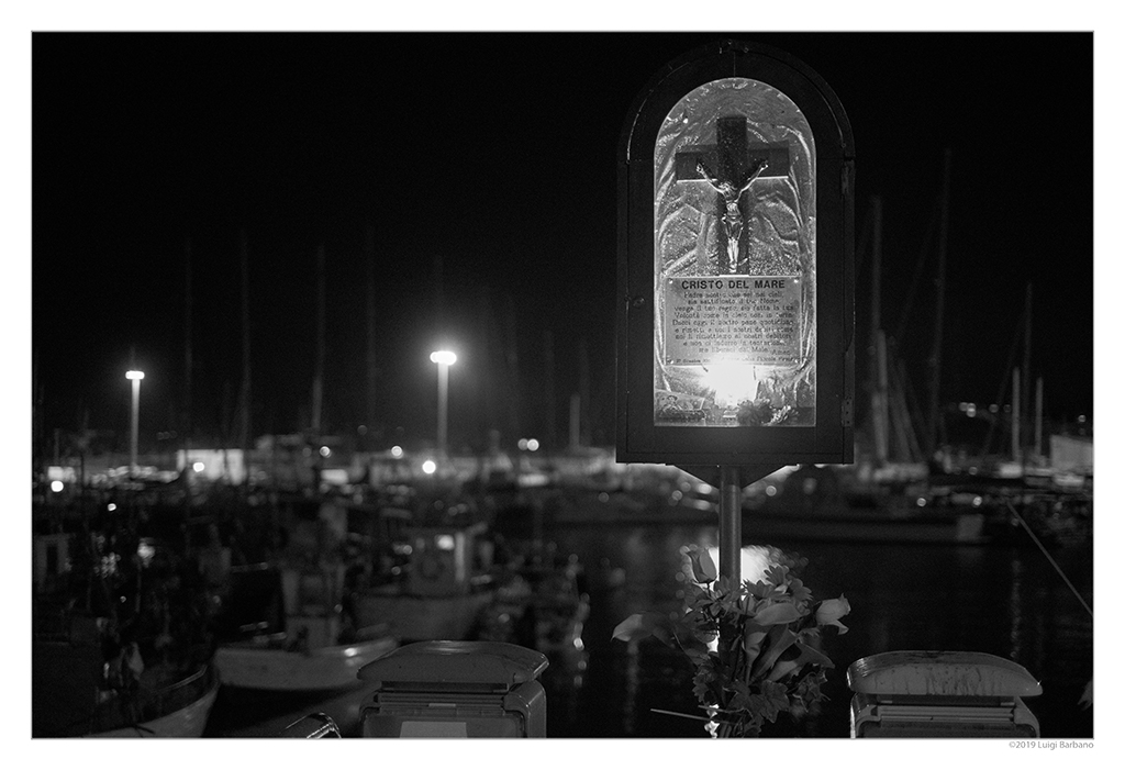 When the sun goes down, the harbor becomes silent, lovely watched by the Christ of the Sea, the same that protected the fishermen during the day.